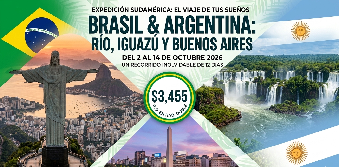 Descubre los rincones más hermosos de estos dos países icónicos en un viaje diseñado para disfrutar con tu familia. Desde la energía de Río de Janeiro y la majestuosidad de las Cataratas del Iguazú, hasta la elegancia europea de Buenos Aires.